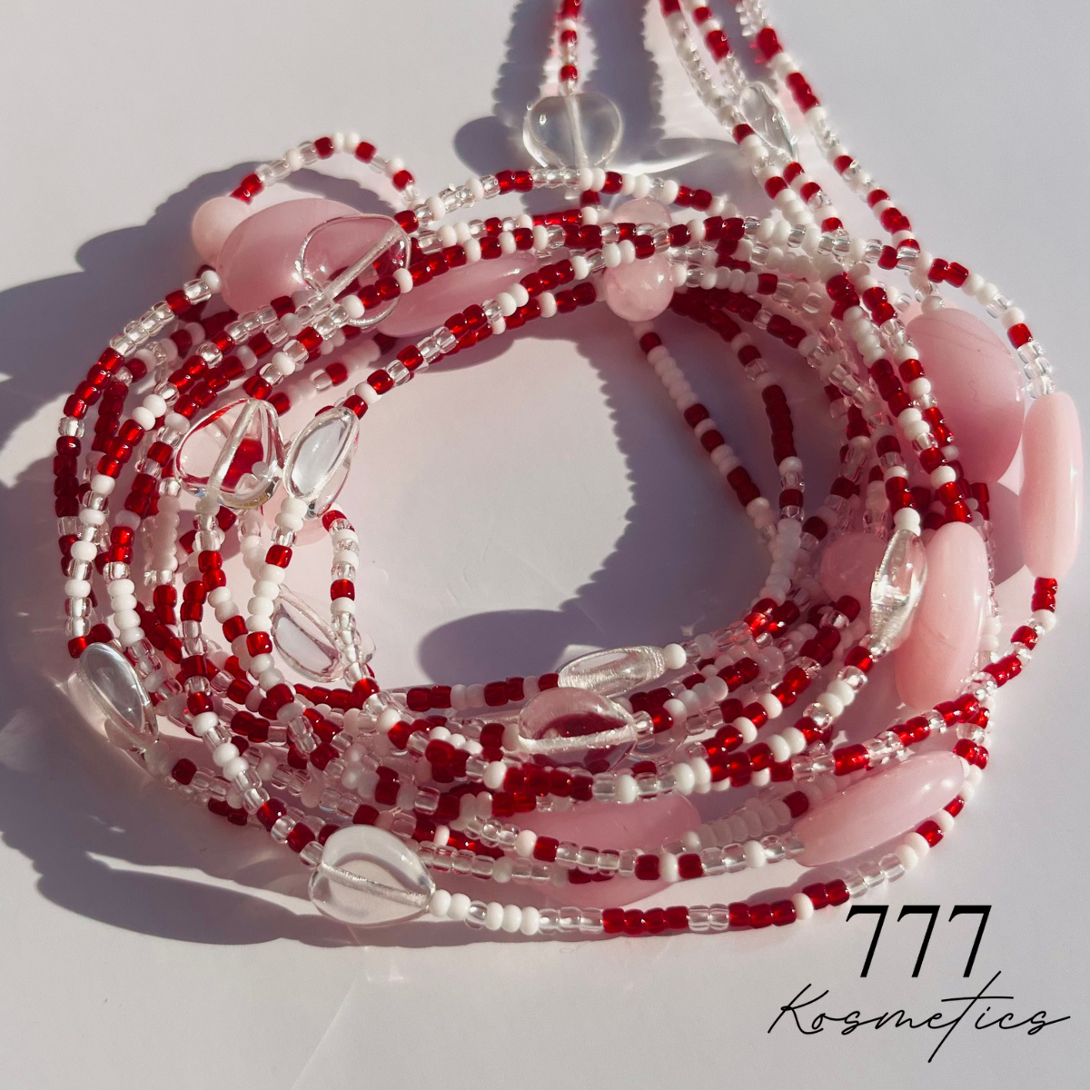 This handcrafted strand blends white, clear, and red beads with soft rose quartz, pink ovals, and radiant clear hearts—designed to embody love, emotional healing, and divine femininity. Each element is intentionally chosen to open the heart, invite compassion, and nurture gentle strength. A delicate yet powerful adornment for those rooted in self-love and spiritual beauty.