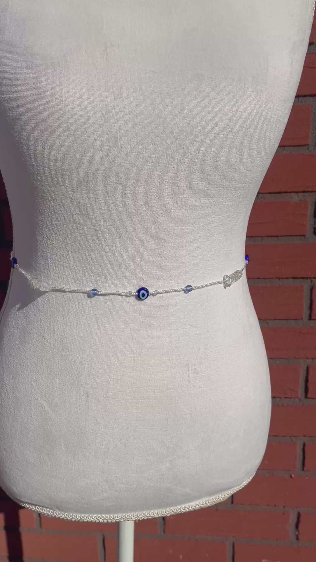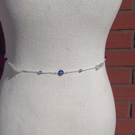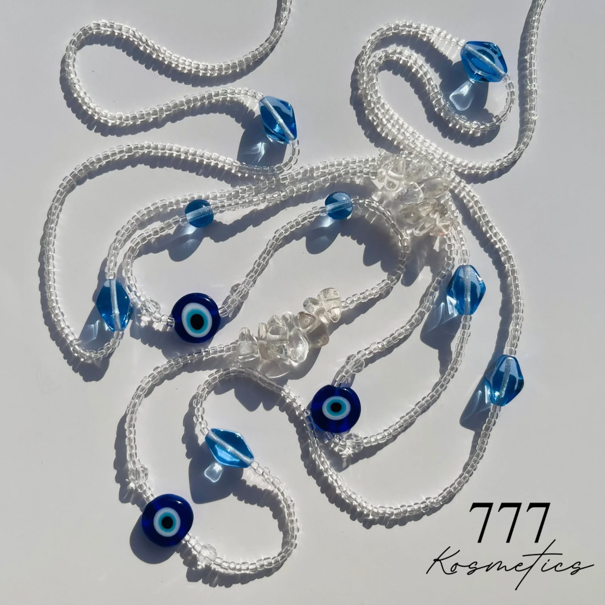 This handcrafted strand is a powerful spiritual shield, designed for protection and clarity. It features traditional Blue Evil Eye beads, which act as a shield, deflecting ill will and jealousy directed at the wearer, while also inviting good luck. These are alternated with genuine Clear Quartz chip stones to amplify positive energy and spiritual focus. This is a great set if you are needing powerful spiritual protection. The design is anchored by sparkling clear and tranquil blue accents, which create an ethereal look. Each element is intentionally chosen to guard your peace, clear your mind, keep your inner vibrations high, and provide an extra layer of spiritual protection.