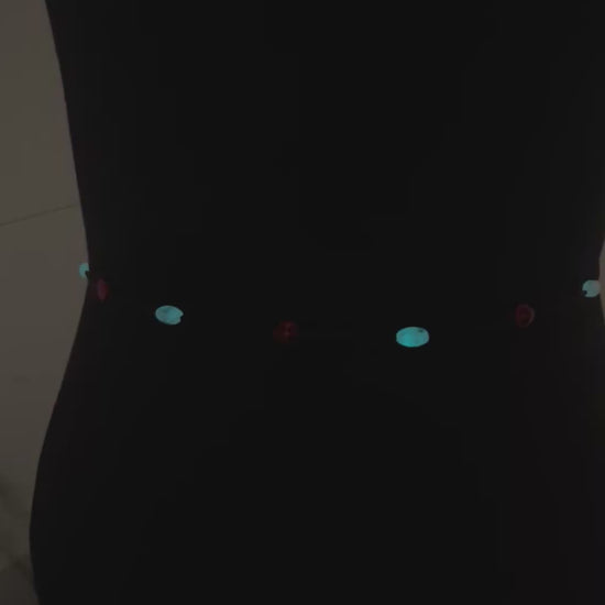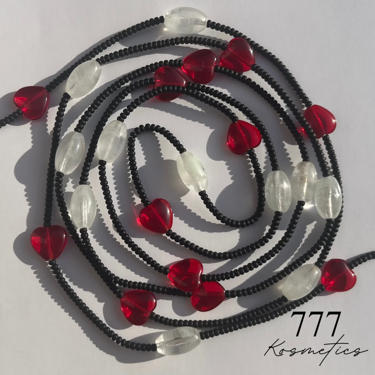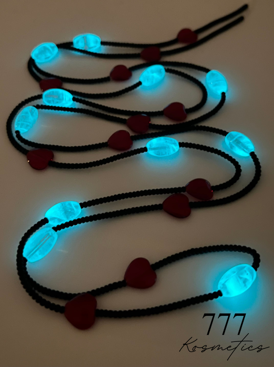 This handcrafted strand blends the foundational strength of the shadow with the intensity of inner passion. Featuring deep Matte Black Beads for unwavering grounding and protection, this set serves as a bold backdrop for vibrant Red Hearts, which embody passionate courage, vitality, and magnetic self-love. The magic of the Glow-in-the-Dark Ovals deliberately shaped to hold a concentrated, internal light that is only revealed in the deepest darkness. Each element is intentionally chosen to support your shadow work, activate profound self-love, and illuminate the powerful, unseen truths that reside within you. A bold and empowering adornment for those rooted in their own divine power and inner magic.