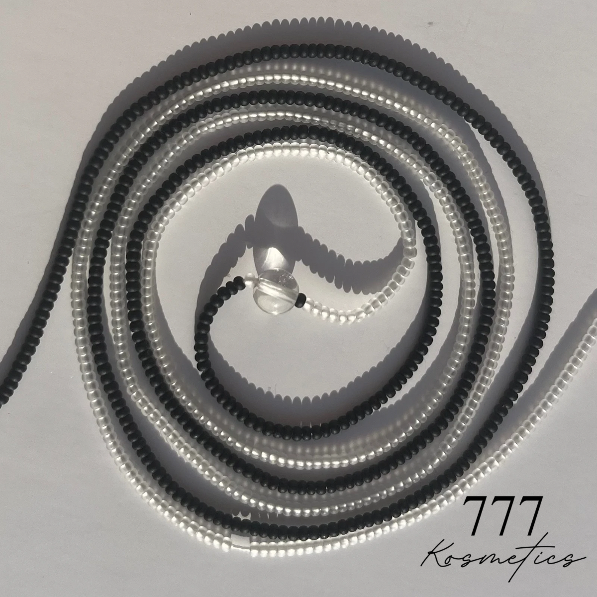 This handcrafted strand embodies the sacred dance between light and dark, clarity and depth. Designed with Matte Clear and Black Beads, it reflects the eternal harmony of duality, the balance that exists within us all. At the center rests a genuine Clear Quartz gemstone, flanked by a single black and clear bead, symbolizing unity and the merging of opposites. Each element is intentionally placed to remind you that both light and darkness hold purpose, that peace is found when both are honored. A timeless adornment for grounding, clarity, and divine balance.